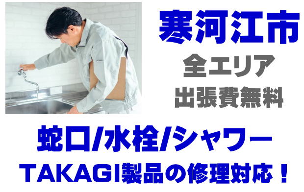 寒河江市で水栓メーカーTAKAGIの修理業者をお探しなら当社までお気軽にお問い合わせください。蛇口の水漏れ、シャワーの故障などタカギ製に関するトラブルなら何でもご相談ください。